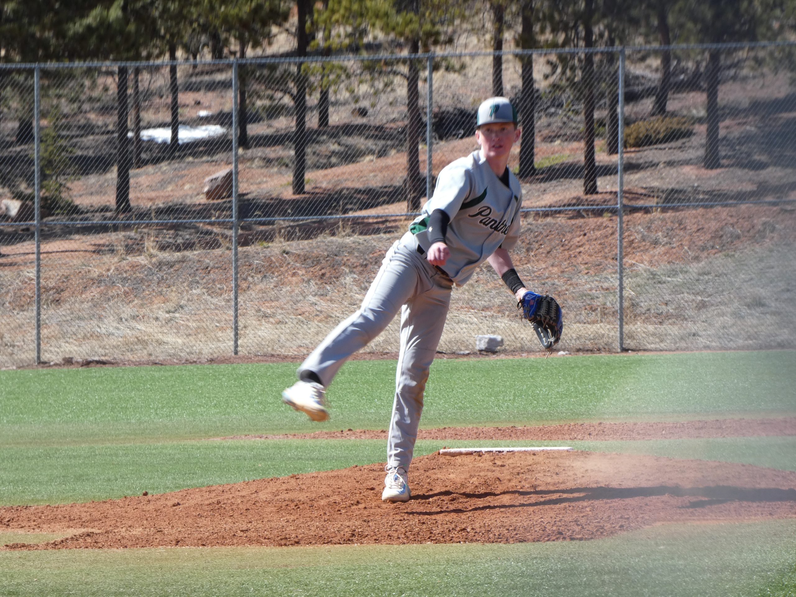 On April 5, Panther baseball fans made the trip outdoors to Woodland Park’s Meadow Wood Sports Complex to partake in their first match out on the home diamond. Neighbors of the field said that crews spent hours clearing snow for the home opener. But for a change, the fans and players were graced by a fairly sunny day for Woodland Park.