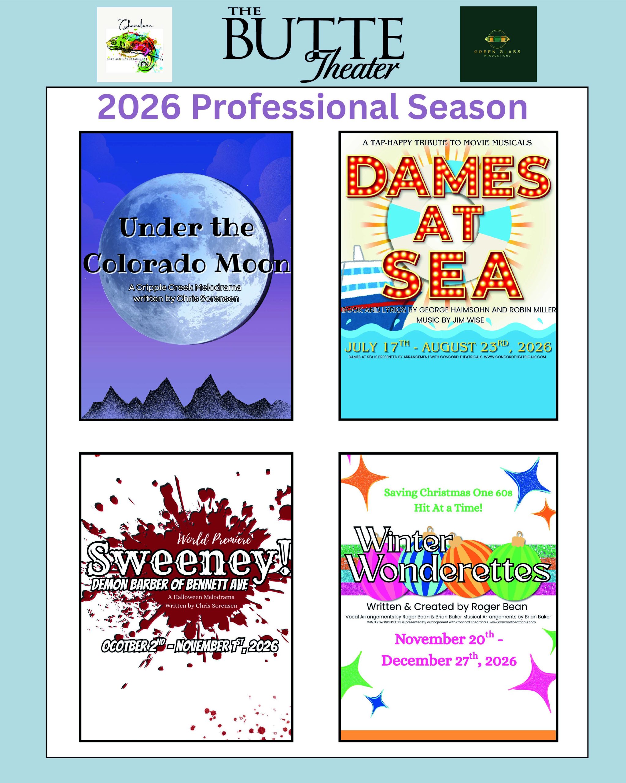 Butte Theater Manager Lauren Smith promises the professional season won’t disappoint regular patrons, area visitors, locals and new theater-goers. The Butte is again partnering with the Colorado Springs-based production companies of Chameleon Arts & Entertainment and Green Glass Productions.